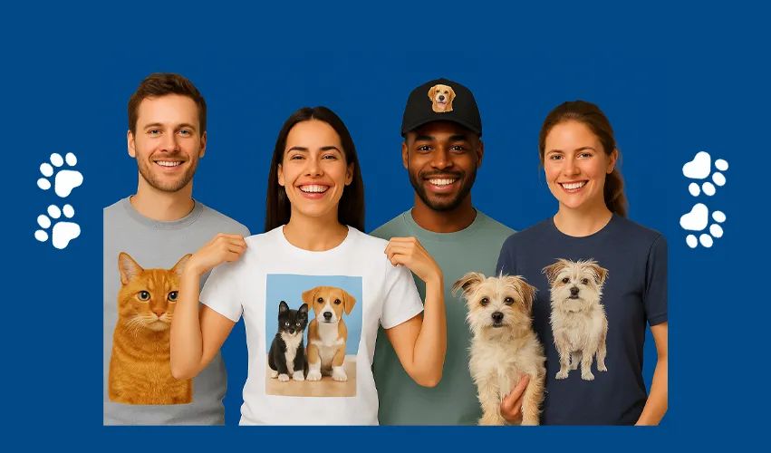The business model centers on simplicity and customization. Customers submit photographs of their pets, which are then professionally screen printed onto their choice of apparel. The service offers various color options and sizes to accommodate different preferences and needs.